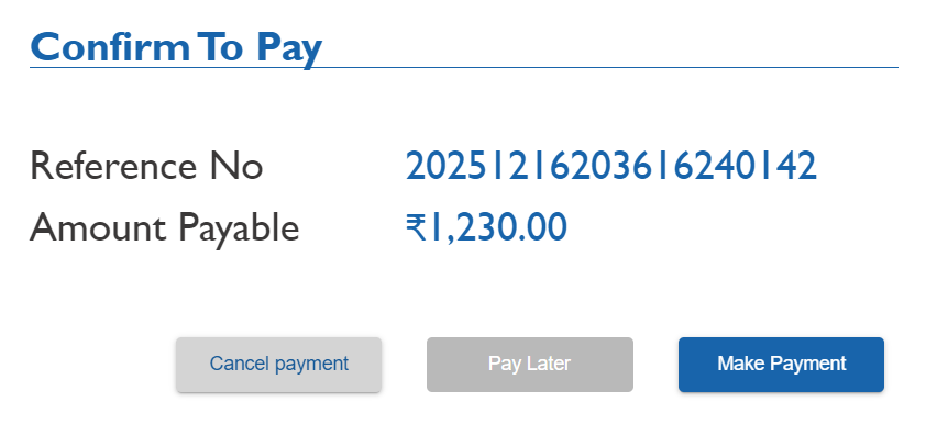 - नेक्स्ट बटन पर क्लिक करते ही नीचे इमेज में दिख रहा है इस तरह का पॉप अप खुलकर सामने आएगा इस पर आपको मेक पेमेंट पर क्लिक कर देना है